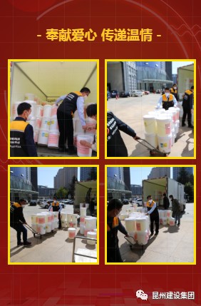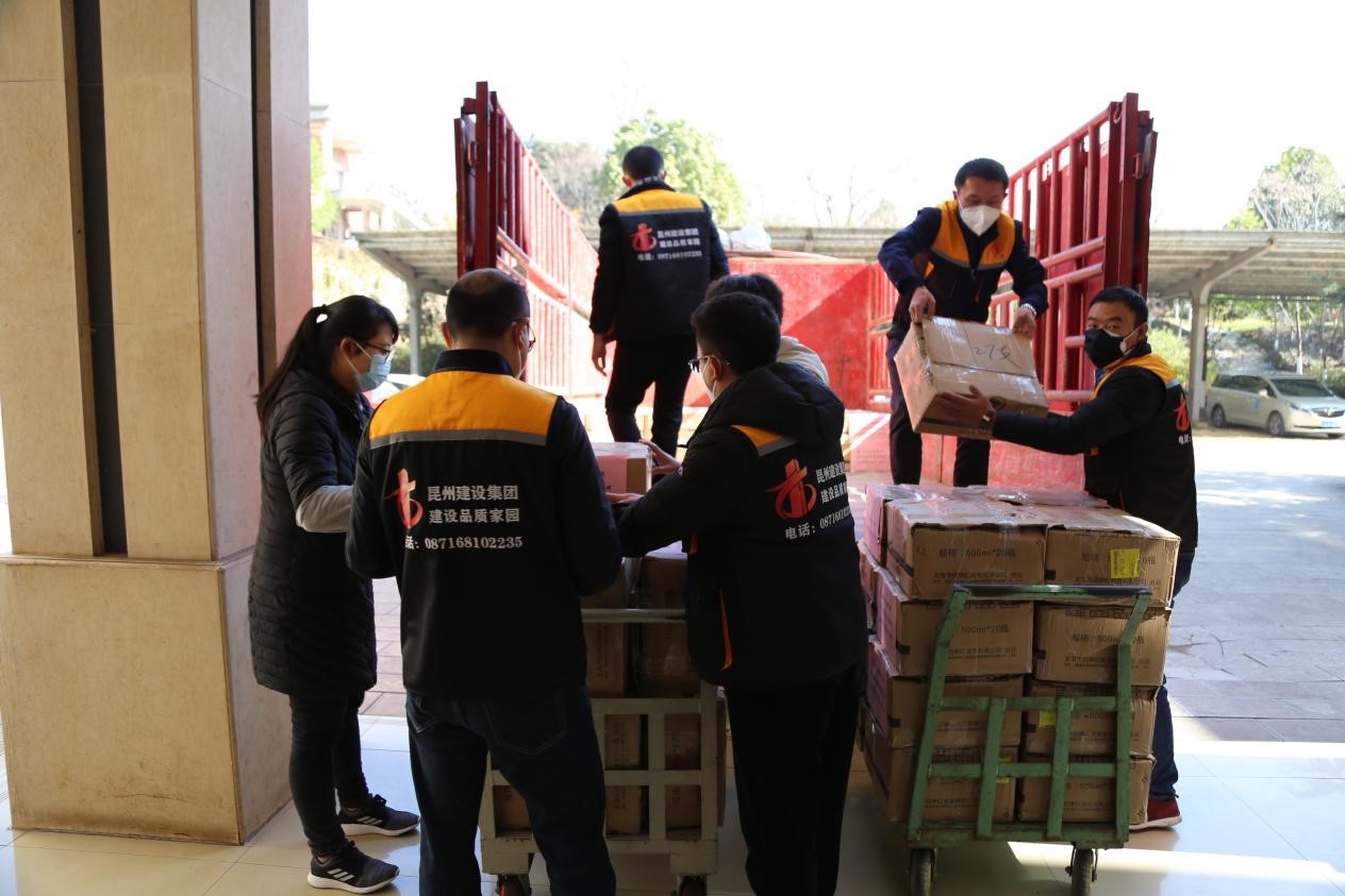 2月14日下午2:00,昆州集團(tuán)員工代表出發(fā),向高新區(qū)疫情防控指揮部運送捐贈物資。