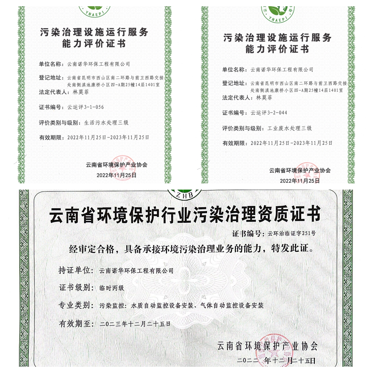 云南諾華環(huán)保工程有限公司成立于2009年8月,公司現(xiàn)有職工50多人,公司主要從事于承接工程建設業(yè)務;技術服務、技術開發(fā)、技術咨詢、技術交流、技術轉(zhuǎn)讓、技術推廣;工程管理服務;污水處理及其再生利用;公司在環(huán)保設備的銷售、運營維護方面擁有大量業(yè)績和技術水平。公司獲得的資質(zhì)證書有:質(zhì)量管理體系認證證書、職業(yè)健康安全管理體系認證證書、環(huán)境管理體系認證證書、污染治理丙級證書、生活污水處理服務能力評價證書、工業(yè)廢水處理服務能力評價證書、3A信用等級證書,公司具備環(huán)保方面的人才與技術力量,承接相關專業(yè)的業(yè)務需求。