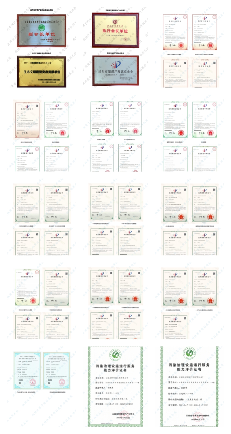 公司持有環(huán)保工程專業(yè)承包二級(jí)、市政公用工程總承包三級(jí)、建筑工程總承包三級(jí)、污染治理乙級(jí)、污染治理設(shè)施運(yùn)行服務(wù)二級(jí)資質(zhì)證書。前后獲得“十二五”生態(tài)文明建設(shè)突出貢獻(xiàn)單位、云南省省級(jí)成長(zhǎng)型中小企業(yè)、云南省知識(shí)產(chǎn)權(quán)優(yōu)勢(shì)企業(yè)、云南省科技型中小企業(yè)、云南省專精特新中小企業(yè)、招商蛇口最佳合作伙伴、中交置業(yè)友好合作方獎(jiǎng)等榮譽(yù)。